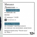 ![]() Группа представит новую программу и новые песни оценка: 0.00 / 0 | ![]() Выставка приурочена к 50-летию создания Новгородского отделения Союза художников России оценка: 0.00 / 0 | ![]() Лекция, мастер-класс художника Михаила Данилова по каллиграфии оценка: 0.00 / 0 |